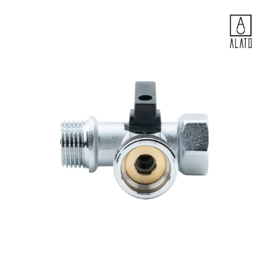 Миникран шаровой, проходной, для быт. тех., хром, резьбы НР-НР 0210-1520, 1/2" х 3/4" х 1/2"