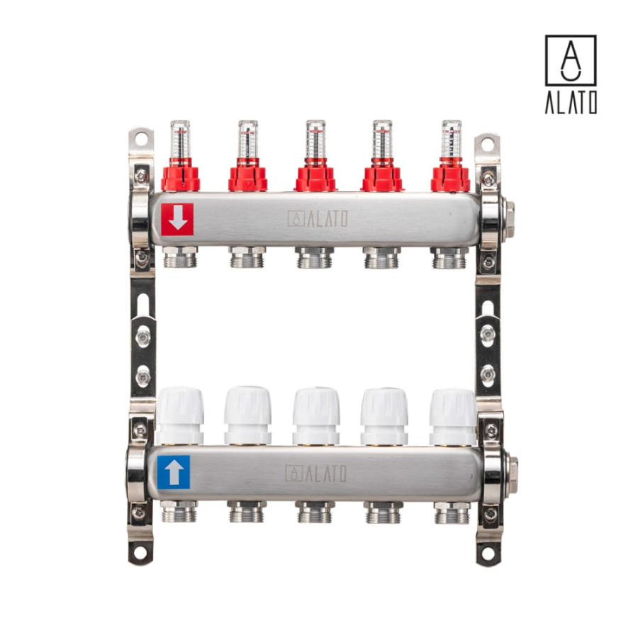 Коллектор с расходомерами ALATO 0301-0005, 1" x 3/4" x 5-вых