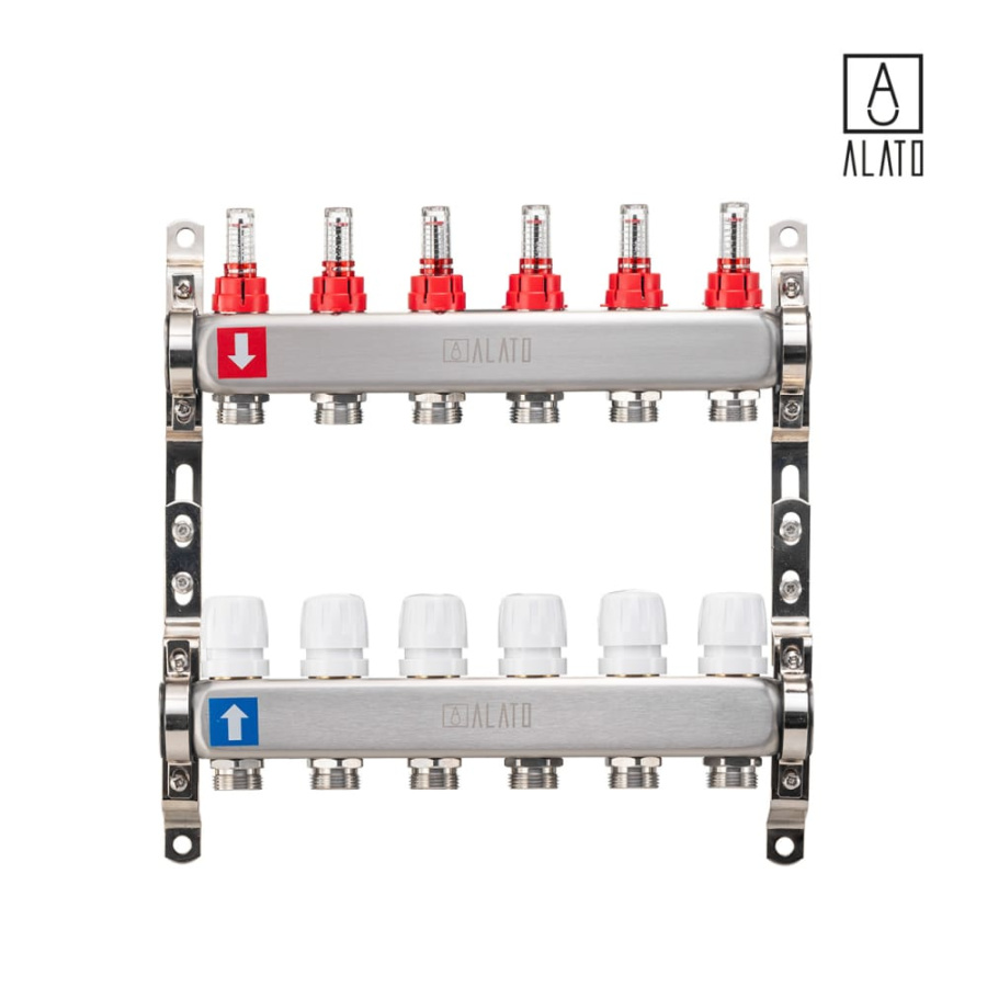 Коллектор с расходомерами ALATO 0301-0006, 1" x 3/4" x 6-вых