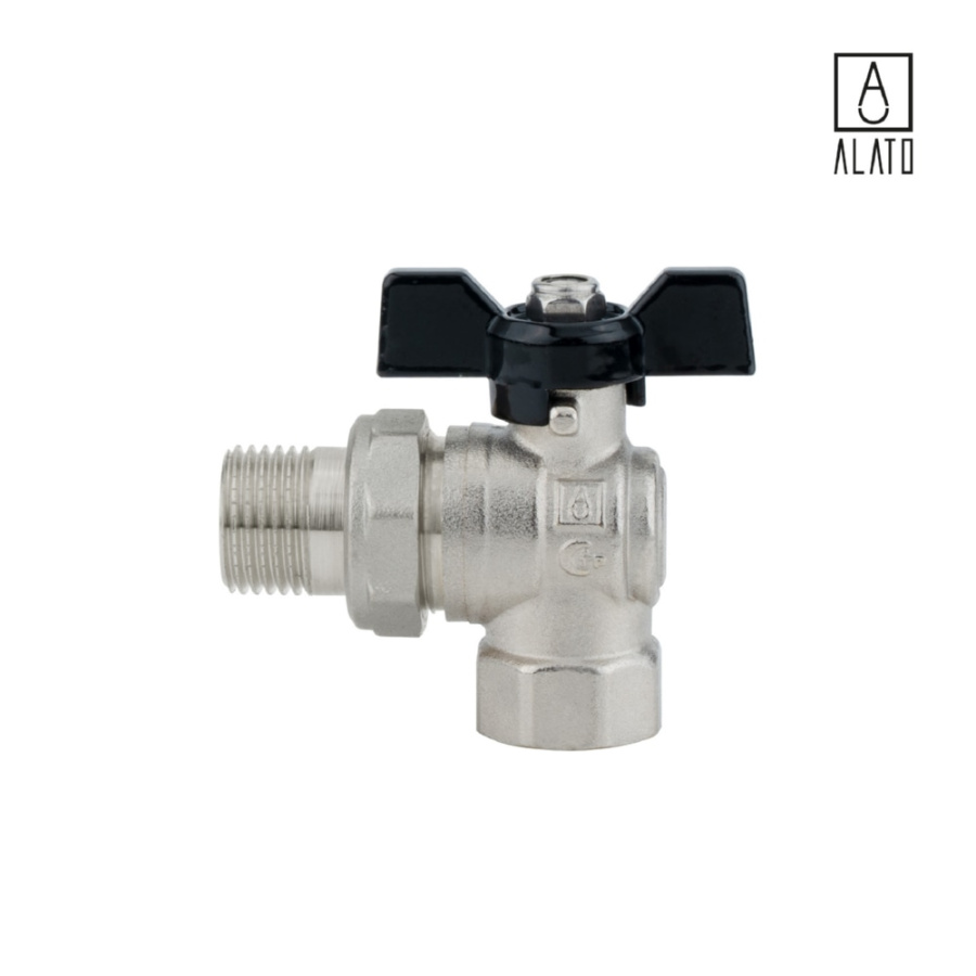 Кран шаровой угловой с «американкой», неполнопроходной, ВР/НР, ручка бабочка 0207-1515, 1/2" x 1/2"