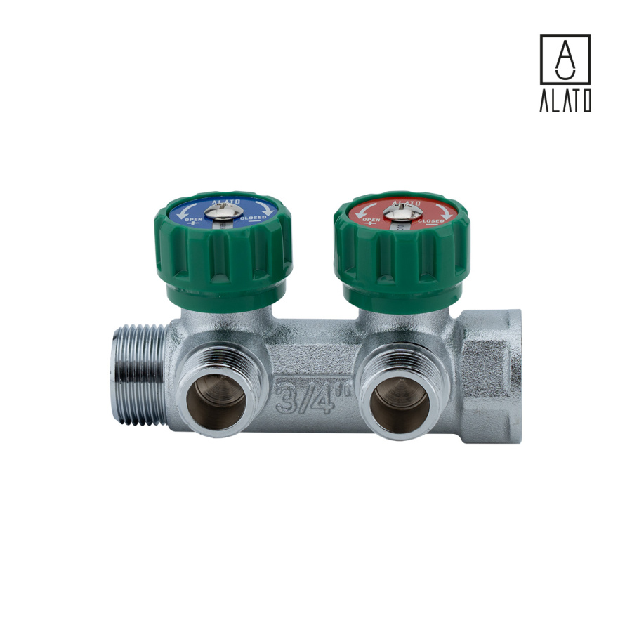 Регулирующий коллектор, подключение 1/2" (под плоское улоптнение) 2 вых., 0311-0002, 3/4" х 2 х 1/2"