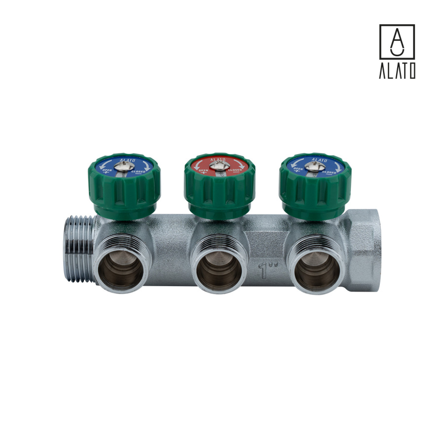 Регулирующий коллектор, подключение 3/4" (евроконус) 3 вых., 0312-0003, 1"x3/4"x3 вых